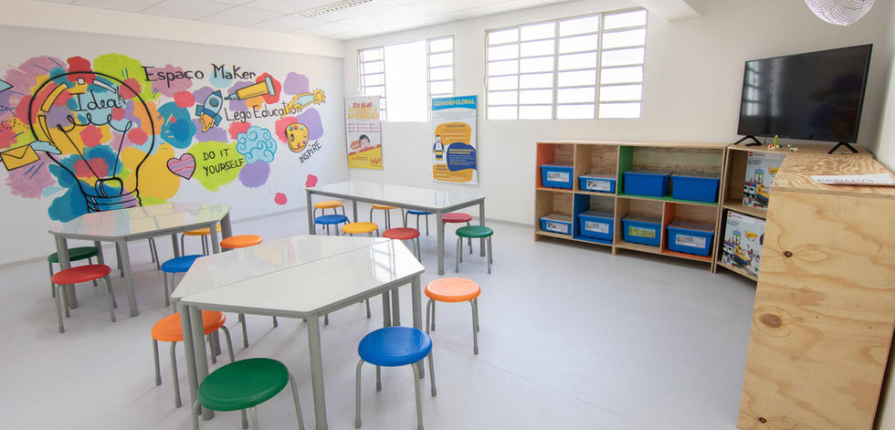 As salas de aula são amplas e atendem a um número limitado de alunos, para que possam desfrutar de um espaço adaptável para atividades individuais ou vivências coletivas.